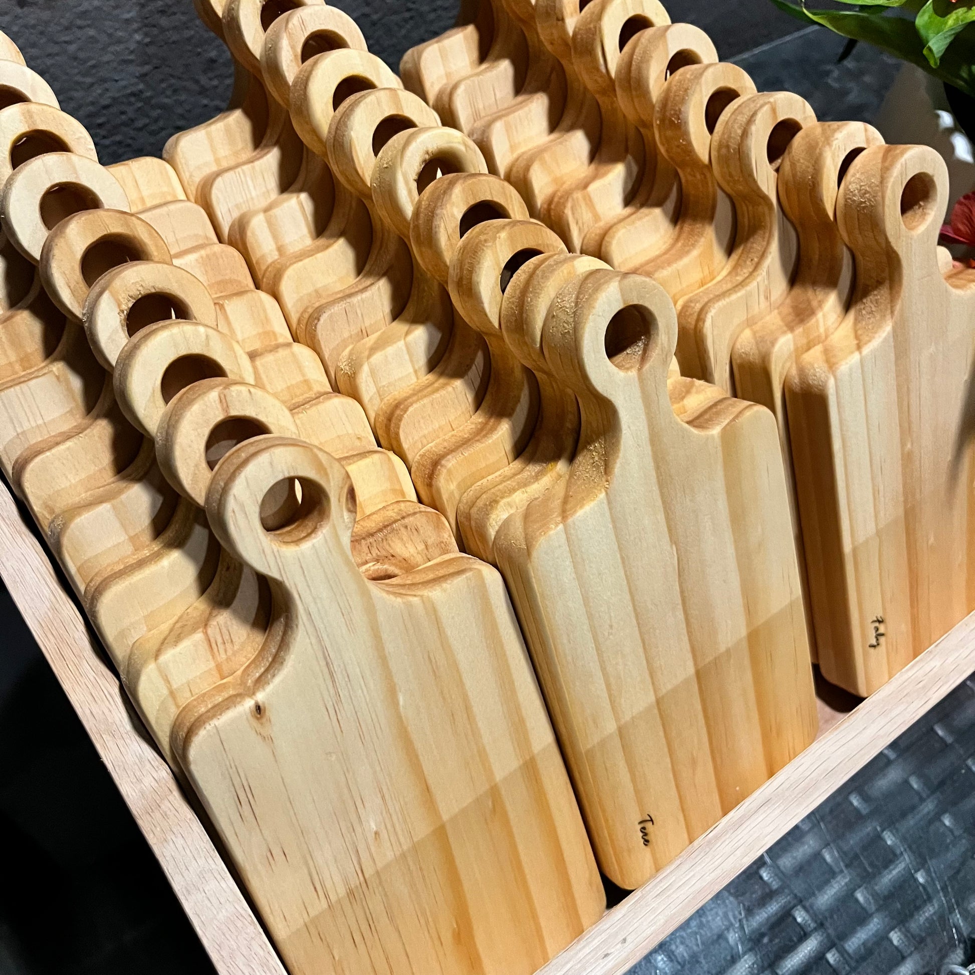 Pequeña, práctica y con mucho estilo. Nuestra tablita de charcutería de madera de pino es perfecta para darle un toque especial a cualquier ocasión.